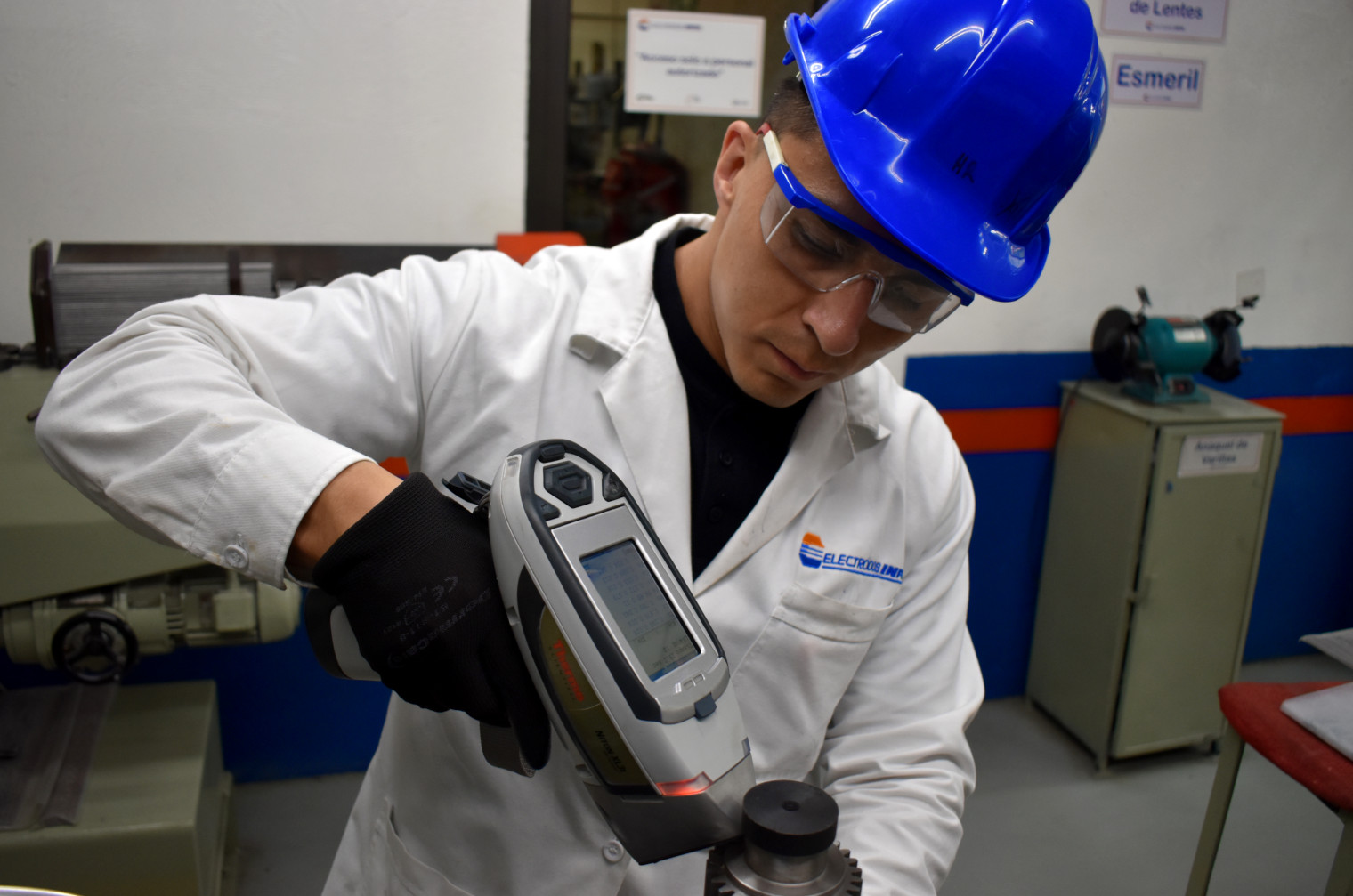 En el Laboratorio químico de Electrodos Infra es imprescindible determinar el contenido de los elementos químicos presentes en las materas primas de nuestros productos y los productos terminados. En los alambrones utilizados identificamos manganeso, cromo, níquel, entre otros y en los minerales identificamos y cuantificamos estaño y zirconio. Además, en el control de calidad de nuestros productos terminados identificamos los metales depositados como cobre, estaño, molibdeno, manganeso, zinc, entre otros. Además de ser un Laboratorio de ensayos somos parte del giro industrial en la fabricación de soldadura, contamos con un equipo analizador de fluorescencia de rayos X que nos permite identificar la composición química de los materiales metalicos con un analisis rápido, obteniendo la composición de elementos químicos como Mn, Cr, Ni, Mo, W, Cu, Fe, V y Zr en un tiempo entre 60 y 120 segundos dándonos la facilidad de ensayar varias muestras en un lapso corto y aparte el ensayo se considera como no destructivo lo cual nos permite preservar el material integro, gracias al diseño del equipo podemos analizar piezas grandes y chicas en sitio o mover el equipo tramos cortos para el acceso a la pieza y así clasificar y verificar el cumplimiento requerido por los diferentes estandares de clasificación de materiales. También contamos con una configuración del equipo para el análisis de metales preciosos como el oro brindándonos el kilate que contiene el metal o la plata indicando que porcentaje que está presente.